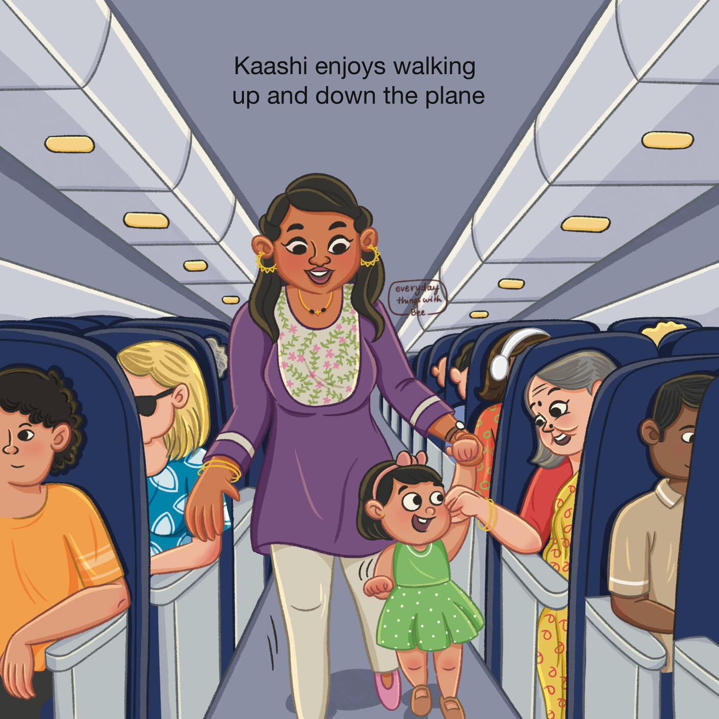 "Kaashi's First Flight" is a simple story that takes the young readers on Kaashi, the protagonist's first flight experience. From watching her parents pack the bags, watching the planes take off and land from the airport lobby, to actually sit in the plane to looking at the clouds from above the sky, Kaashi experiences everything - wonder, curiosity, joy, apprehension and comfort. This story introduces young readers the concept of a plane and taking a journey on one.
