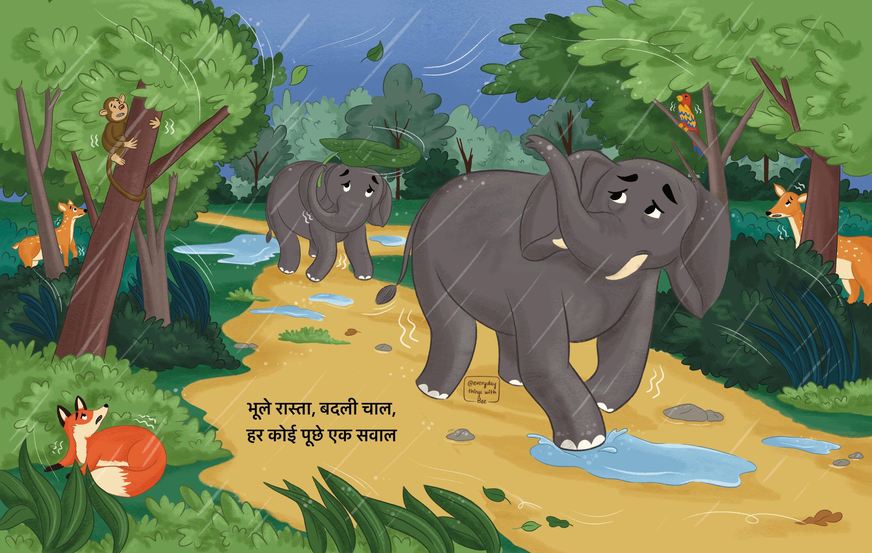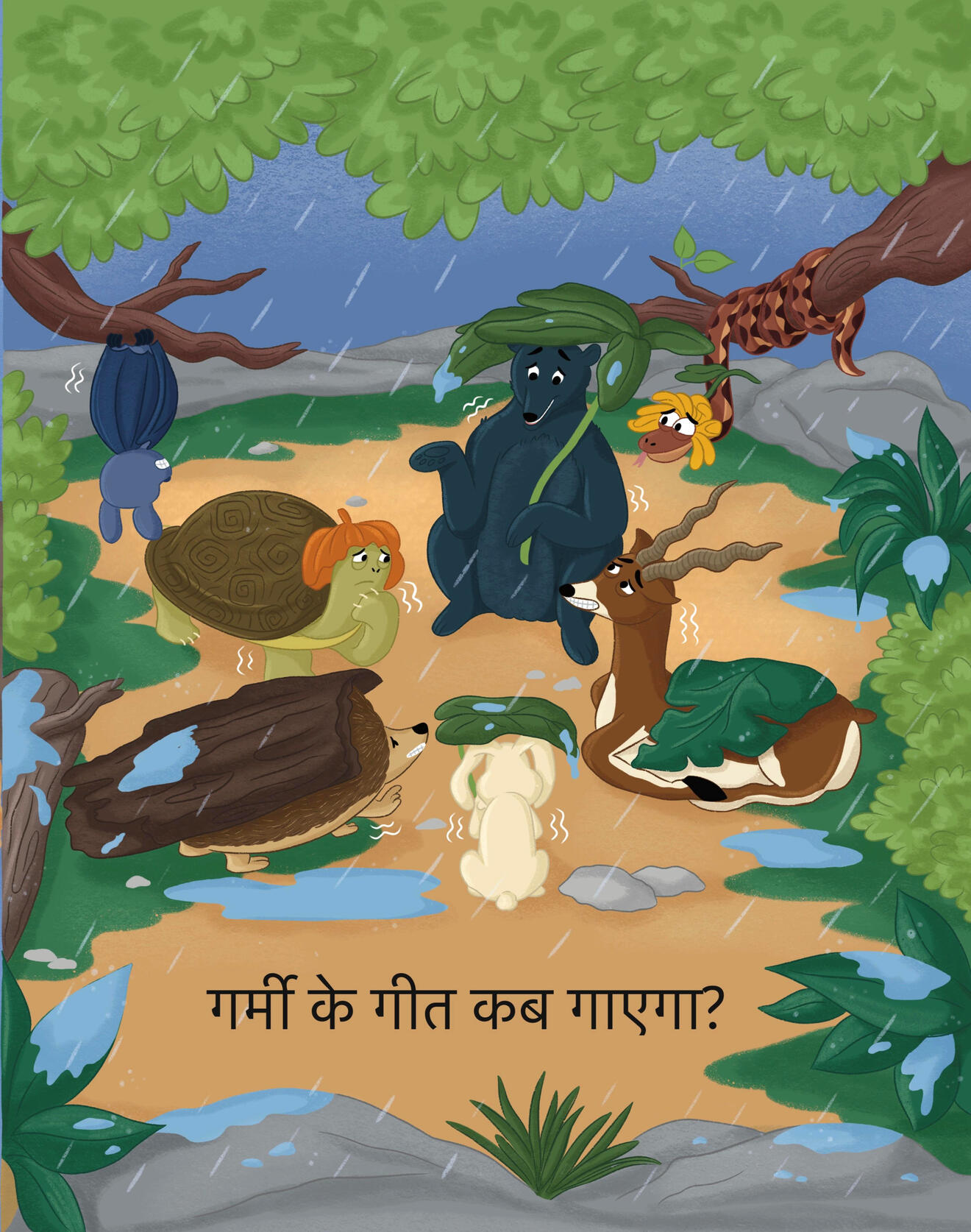"Sooraj se sawaal" is a poetic story that introduces the various seasons and weather conditions to the young readers through its fun and engaging poetic storytelling. It is set in a forest with key protagonists being a bear, a snake, a tortoise and a bat who experience the different effects of weather.